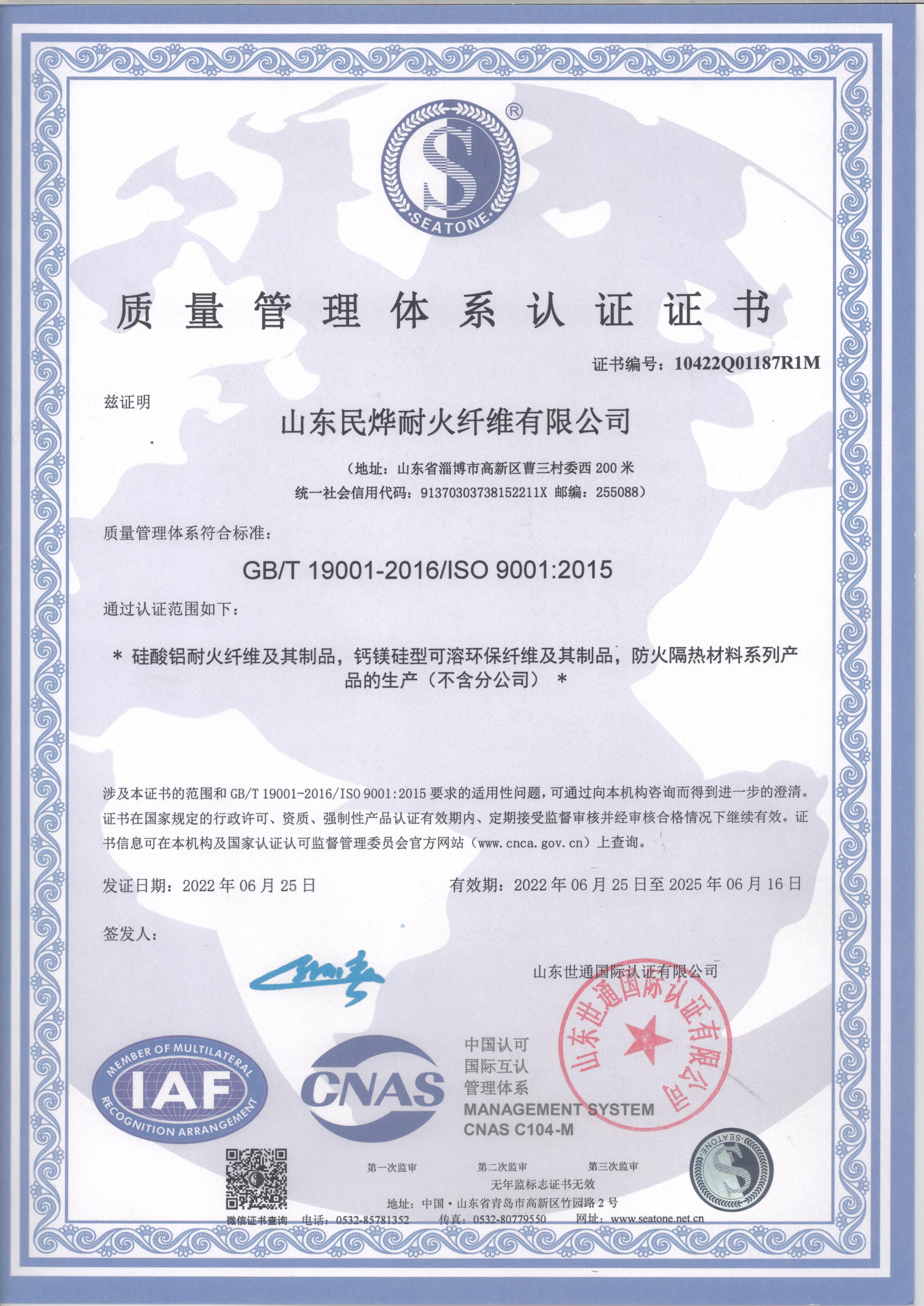 山東民燁耐火纖維有限公司坐落于山東淄博高新開發區,公司成立于2002年,是一家集陶瓷纖維及其配套耐火、 隔熱材料的設計、研發、生產、銷售、施工于一體的股份制企業。下設內蒙古民燁新材料科技有限公司、山東民燁耐火纖維有限公司上海分公司、山東民燁耐火纖維有限公司工程分公司、懷仁縣昌元陶瓷原料有限公司。經過20年的潛心經營,公司在生產規模、市場知名度方面均已成為國內陶瓷纖維材料行業的領先企業。山東民燁為中國工業窯爐材科系統定制專家,這一民族品牌意識已經深入人心。
